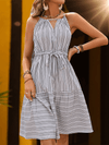 Deze stijlvolle midi jurk met sportieve strepen en een strikceintuur biedt een comfortabele pasvorm. Ideaal voor casual uitjes in de lente en zomer, gemaakt van lichtgewicht materiaal voor warme dagen.