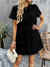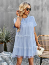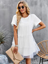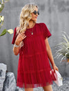 Deze elegante mini jurk met ronde hals en geweven mesh inzet biedt een comfortabele pasvorm en een romantische uitstraling. Ideaal voor dagelijks gebruik en warme dagen dankzij de lichte stof.