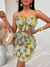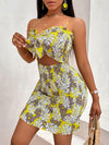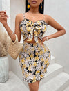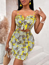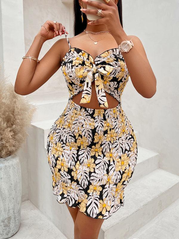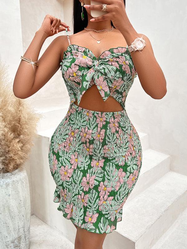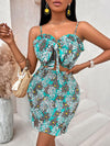 Deze trendy mini jurk met V-hals en bloemenprint biedt een vrouwelijke en speelse uitstraling. Ideaal voor zomerse uitjes en speciale gelegenheden, met een comfortabele pasvorm en strikdetail.