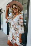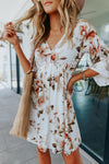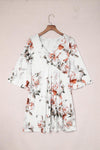 Elegante jurk met V-hals en driekwart mouwen, verfijnd met een bloemenprint en flatterende A-lijn die de taille benadrukt. Ideaal voor elke gelegenheid.