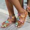 Deze handgemaakte boho sandalen met kleurrijke vlinderdetails bieden een comfortabele en ademende pasvorm. Perfect voor stranddagen en festivals, eenvoudig te combineren met zomerjurken en shorts.