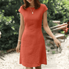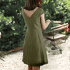 Deze elegante A-lijn jurk met ronde hals en korte mouwen is perfect voor dagelijks gebruik en werk. De rugloze stijl en normale pasvorm maken het comfortabel voor lente, zomer en herfst.