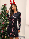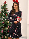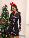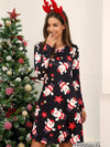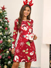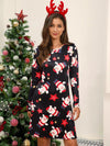 Deze feestelijke lange jurk met ronde hals en kerstprint biedt een comfortabele pasvorm. Ideaal voor kerstvieringen, met een warme stof die eenvoudig te combineren is voor een feestelijke look.