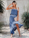 Deze stijlvolle maxi jurk met off-shoulder ontwerp en asymmetrische zoom biedt een luchtige pasvorm. Perfect voor zomerse evenementen en strandvakanties, met een trendy tie-dye patroon voor een boho uitstraling.