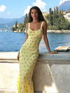 Deze charmante maxi jurk met bloemenprint en spaghetti bandjes biedt een luchtige pasvorm en een elegante uitstraling. Ideaal voor zomerse dagen en casual uitjes.