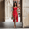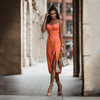 Deze elegante maxi-jurk van hoogwaardig polyester heeft een opvallende dierenprint en een stijlvol splitontwerp. Perfect voor diverse gelegenheden, biedt het een verfijnd en comfortabel silhouet.