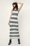 Deze sportieve maxi jurk met gestreept patroon en comfortabele gebreide textuur is perfect voor zomerse uitjes. Het mouwloze ontwerp biedt zowel stijl als comfort, ideaal voor een dagje strand of casual gelegenheden.