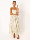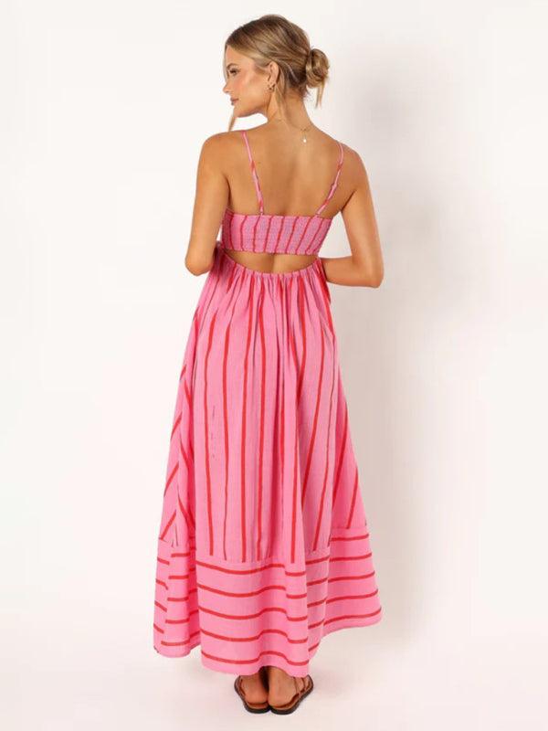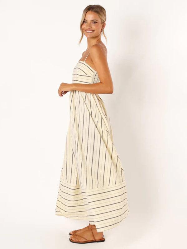 Deze stijlvolle maxi jurk met een gestreept patroon en mouwloos ontwerp biedt een comfortabele en luchtige pasvorm. Ideaal voor zomerse dagen en casual stranduitjes.