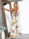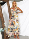 Deze elegante maxi jurk met halternek en abstracte print biedt een flatterende pasvorm en ultiem comfort. Perfect voor zowel stranduitjes als avondgelegenheden, met een stijlvolle uitstraling die ideaal is voor de zomer.