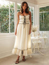 Maxi Jurk met Rimpeldetails en Kanten Trim