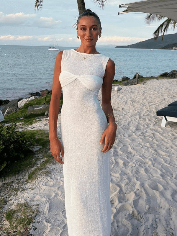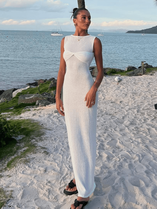 Deze elegante maxi jurk met ronde hals en effen kleur biedt een flatterende pasvorm voor elke gelegenheid. Ideaal voor stranduitjes en casual zomer evenementen.