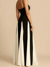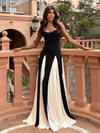 Deze elegante maxi jurk met spaghetti bandjes en kleurblok ontwerp biedt een moderne uitstraling. Perfect voor formele gelegenheden, met een veelzijdige stijl die eenvoudig te combineren is met accessoires.