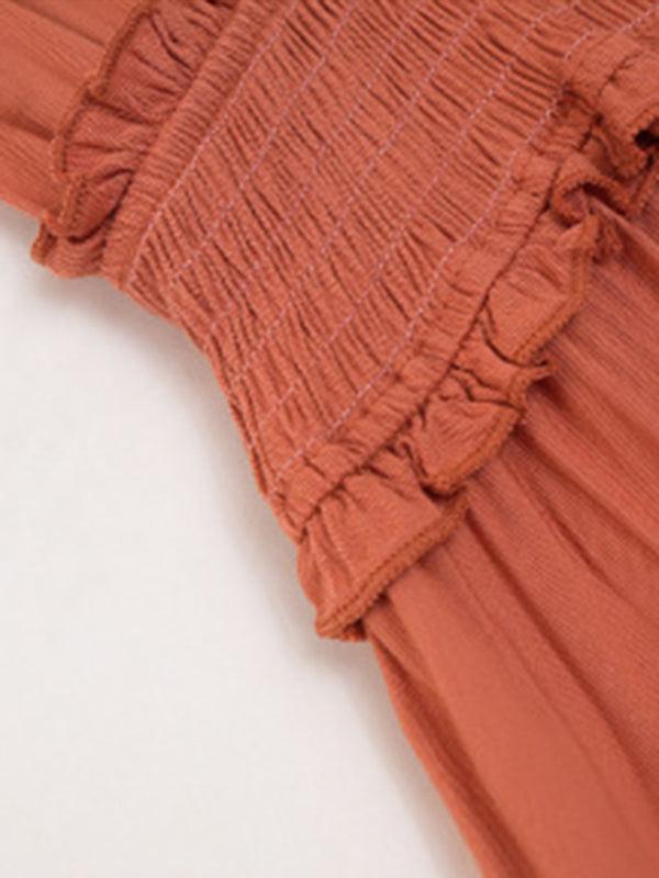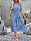 Maxi Jurk met V-hals en Effen Kleur - Group3 - Jurkjes.co