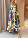 Deze unieke maxi jurk met vierkante hals en speelse graffiti print biedt een comfortabele A-lijn pasvorm. Ideaal voor casual dagen en zomerse uitjes, met een levendig en artistiek ontwerp.