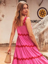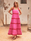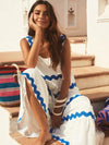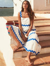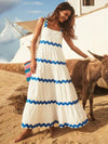 Deze stijlvolle maxi jurk met een vloeiende pasvorm en opvallend golfpatroon is perfect voor zomerse dagen. Ideaal voor zowel stranduitjes als casual gelegenheden, biedt deze jurk comfort en elegantie.