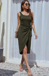Deze stijlvolle midi jurk met asymmetrische zoom en strikceintuur biedt een moderne uitstraling. Perfect voor zowel casual als semi-formele gelegenheden, met een flatterende pasvorm die je figuur accentueert.
