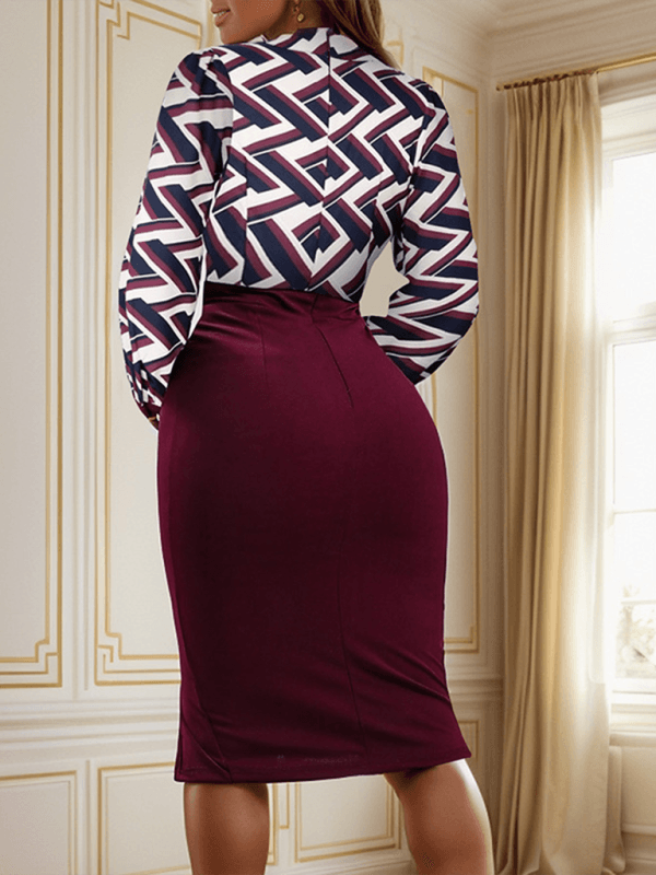 Deze stijlvolle midi jurk met geometrisch patroon en elegante knielengte biedt een professionele uitstraling. Ideaal voor kantoor en dagelijks gebruik, met comfortabele pasvorm en luchtige mouwen.