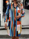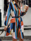 Deze stijlvolle midi jurk met geometrisch patroon en V-hals biedt een veelzijdige look voor elke gelegenheid. Met een comfortabele pasvorm en knoopsluiting is het perfect voor zowel casual als formele settings. Midi jurk, geometrisch patroon, V-hals, knoopsluiting, lange mouwen, casual stijl, formele gelegenheid, comfortabele pasvorm, stijlvolle jurk, damesmode
