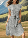 Midi Jurk met Geometrisch Patroon en Strikceintuur - Midi Dresses - Jurkjes.co