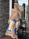 Deze speelse midi jurk met spaghetti bandjes en kleurrijke print biedt een comfortabele pasvorm. Ideaal voor zomerse uitjes en casual gelegenheden, met een vrouwelijke en veelzijdige uitstraling.