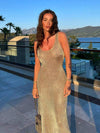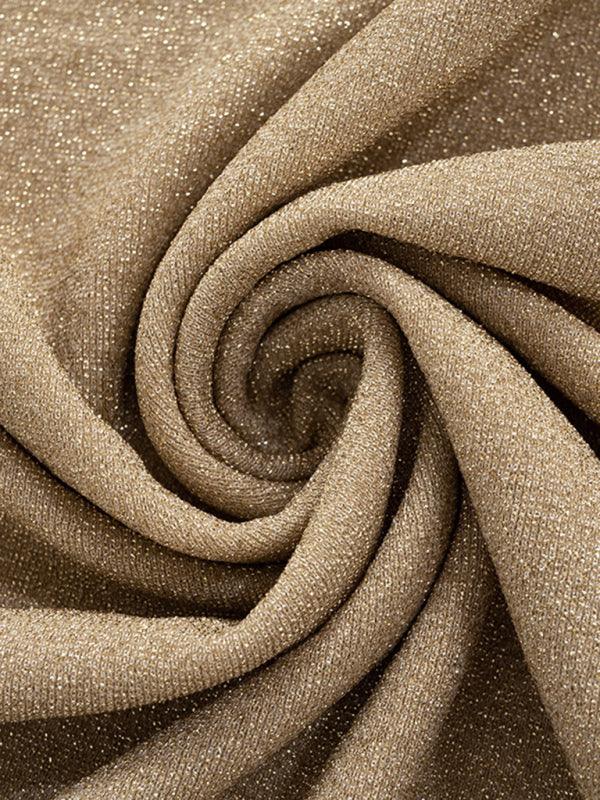 Deze glamoureuze midi jurk met U-hals en glitterende afwerking biedt een elegante pasvorm die perfect is voor avondevenementen en speciale gelegenheden. De mouwloze stijl accentueert je silhouet op een verfijnde manier.