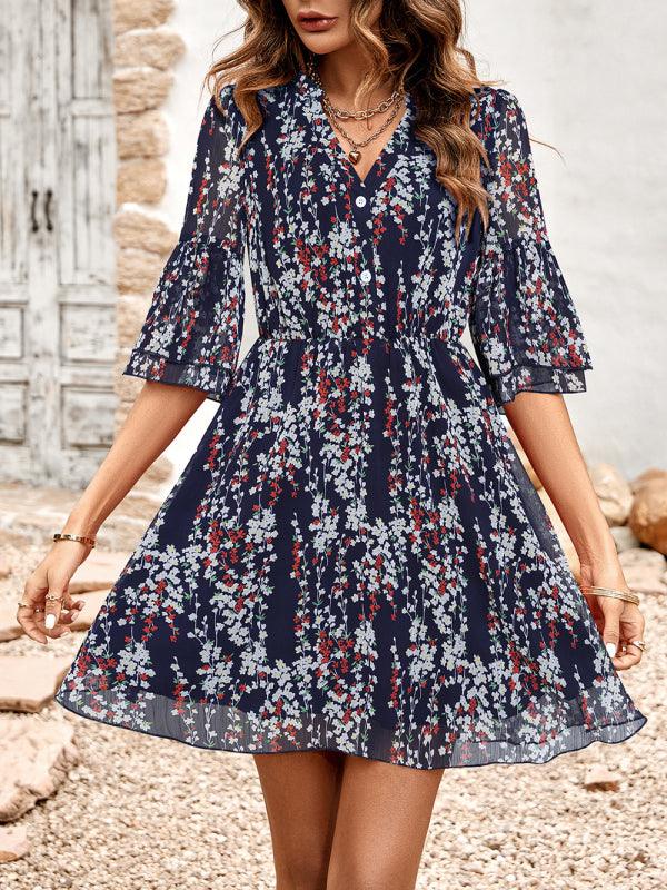 Midi Jurk met V-hals en Bloemenprint - Midi Dresses - Jurkjes.co