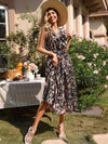 Deze elegante midi jurk met V-hals en bloemenprint biedt een comfortabele pasvorm en een vrouwelijke uitstraling. Ideaal voor zowel casual als speciale gelegenheden, met een strik in de taille voor een verfijnde look.
