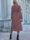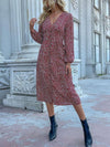 Deze stijlvolle midi jurk met V-hals en bloemenprint biedt een elegante uitstraling en comfortabele pasvorm. Ideaal voor zowel casual als speciale gelegenheden, perfect voor het herfstseizoen.