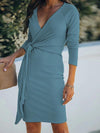 Midi Jurk met V-hals en Ceintuur - Midi Dresses - Jurkjes.co