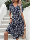 Deze stijlvolle midi jurk met V-hals en speelse dierenprint biedt een comfortabele pasvorm. Ideaal voor zowel casual als semi-formele gelegenheden, met een getailleerde taille voor een flatterende look.