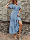 Deze stijlvolle midi jurk in effen kleur heeft een V-hals en een gelaagde rok voor een elegante uitstraling. De elastische taille zorgt voor een comfortabele pasvorm, ideaal voor casual gelegenheden en dagelijks gebruik.