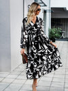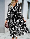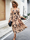 Midi Jurk met V-hals en Geometrisch Design