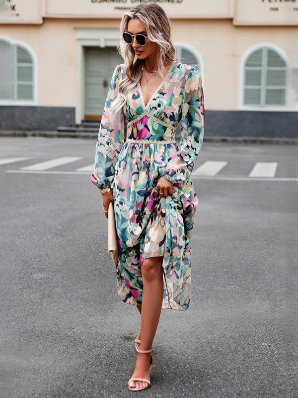 Midi Jurk met V-hals en Geometrisch Design - Group9 - Jurkjes.co
