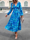 Deze stijlvolle midi jurk met V-hals en geometrisch patroon biedt een elegante uitstraling en comfortabele pasvorm. Ideaal voor zowel casual als chique gelegenheden, met lange mouwen en een geraffineerde taille voor veelzijdige styling.