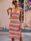 Deze stijlvolle midi jurk met V-hals en gestreept patroon biedt een elegante en comfortabele pasvorm. Perfect voor zowel casual uitjes als chique avonden, met een veelzijdig ontwerp dat altijd in de mode is.