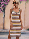 Midi Jurk met V-hals en Gestreept Patroon - Midi Dresses - Jurkjes.co