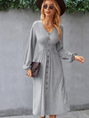 Midi Jurk met V-hals en Knopsluiting
