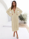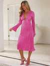Midi Jurk met V-hals en Plooirok - Midi Dresses - Jurkjes.co