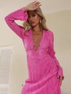 Deze elegante midi jurk met V-hals en plooirok biedt een verfijnde uitstraling voor speciale gelegenheden. De effen kleur en luchtige mouwen maken het perfect voor avondevenementen.