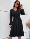 Midi Jurk met V-hals en Plooirok