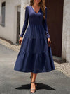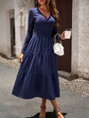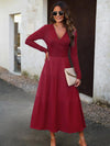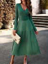Midi Jurk met V-hals en Plooirok