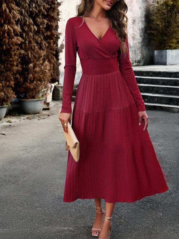 Midi Jurk met V-hals en Plooirok - Group6 - Jurkjes.co