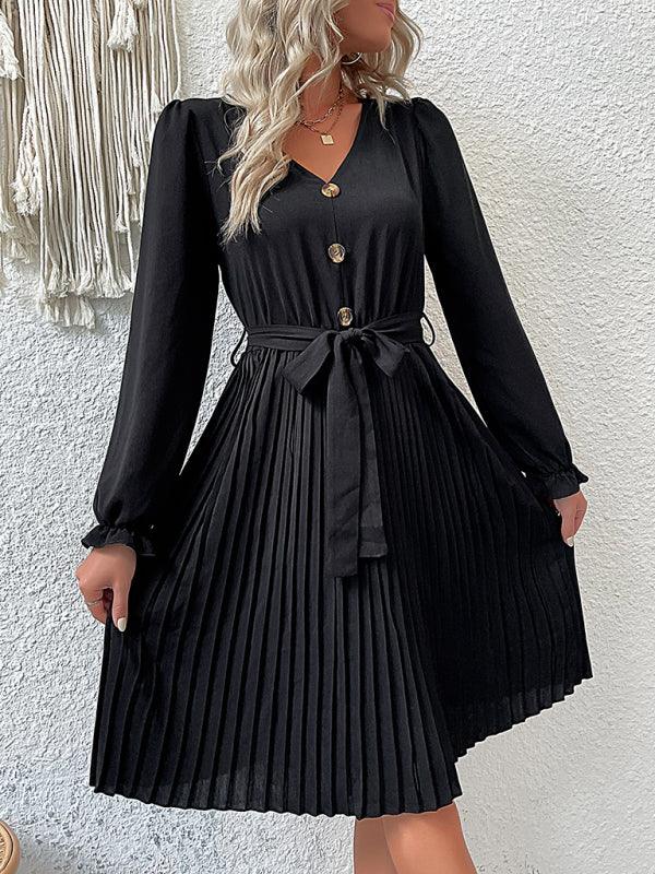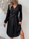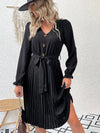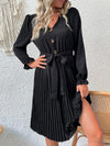 Deze elegante midi jurk met V-hals en plooirok biedt een klassieke uitstraling en een comfortabele pasvorm. Perfect voor zowel casual als formele gelegenheden, met een tailleband die de figuur mooi accentueert. Midi jurk, V-hals, Plooirok, Effen jurk, Elegante jurk, Formele jurk, Casual jurk, Tailleband, Lange mouwen, Klassieke stijl