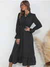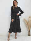 Deze stijlvolle midi jurk met V-hals en speelse polka dots biedt een elegante en veelzijdige look. Perfect voor zowel casual als feestelijke gelegenheden, met een flatterende pasvorm die elk lichaamstype complimenteert.