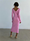 Midi Jurk met V-hals en Ribbelstructuur - Midi Dresses - Jurkjes.co
