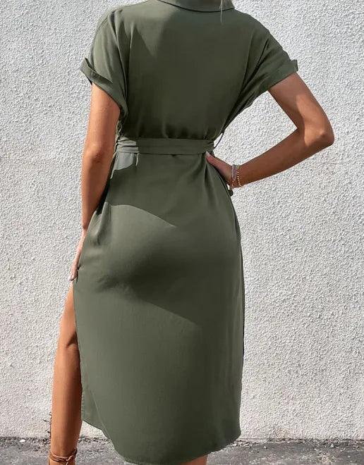 Midi Jurk met V-hals en Strikceintuur