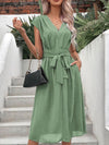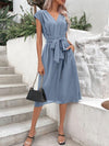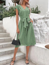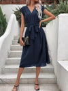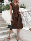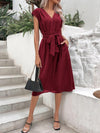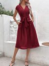 Midi Jurk met V-hals en Tailleband - Midi Dresses - Jurkjes.co