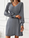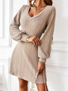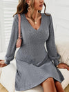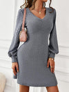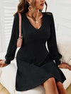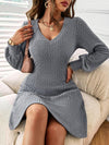 Midi Jurk met V-hals en Textuur Stof - Mini Dresses - Jurkjes.co