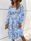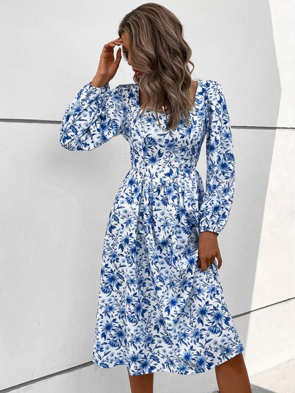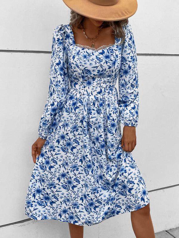 Deze charmante midi jurk met een vierkante hals en blauwe bloemenprint biedt een elegante en comfortabele pasvorm. Ideaal voor zowel tuinfeesten als dagelijkse uitstapjes, met een tijdloze uitstraling.