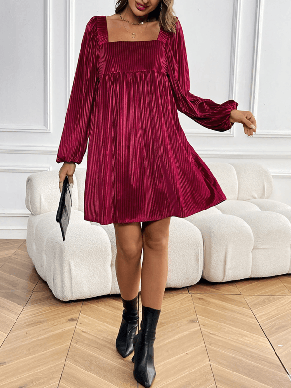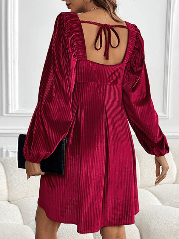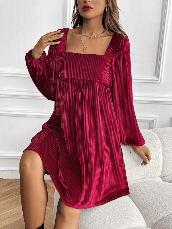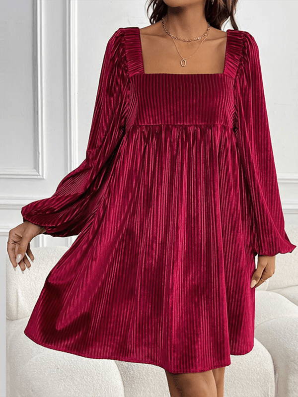 Deze luxe midi jurk met vierkante hals en ribbelpatroon straalt elegantie uit. Ideaal voor feestelijke gelegenheden, met een comfortabele pasvorm en fluweelzachte stof.